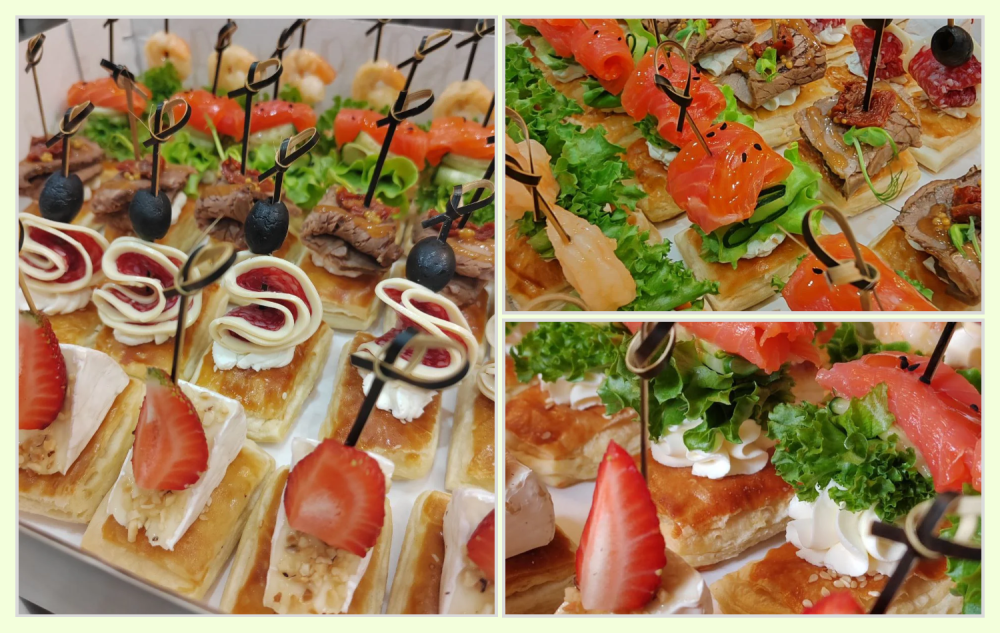 Набор «Гранд» из 30 канапе на слоёном тесте В наборе: -Говядина, творожный сыр, вяленые томаты - 6 шт -Форель, огурец, лист салата, творожный сыр - 6 шт -Креветка, творожный сыр, лист салата - 6 шт -Салями, маслины (оливки), творожный сыр - 6 шт -Сыр Бри + сезонные ягоды или фрукты - 6 шт ВНИМАНИЕ! Гастробоксы доступны к оформлению только предзаказом за 2-3 дня, предоплата 50%. Срочные заказы обсуждаются индивидуально.